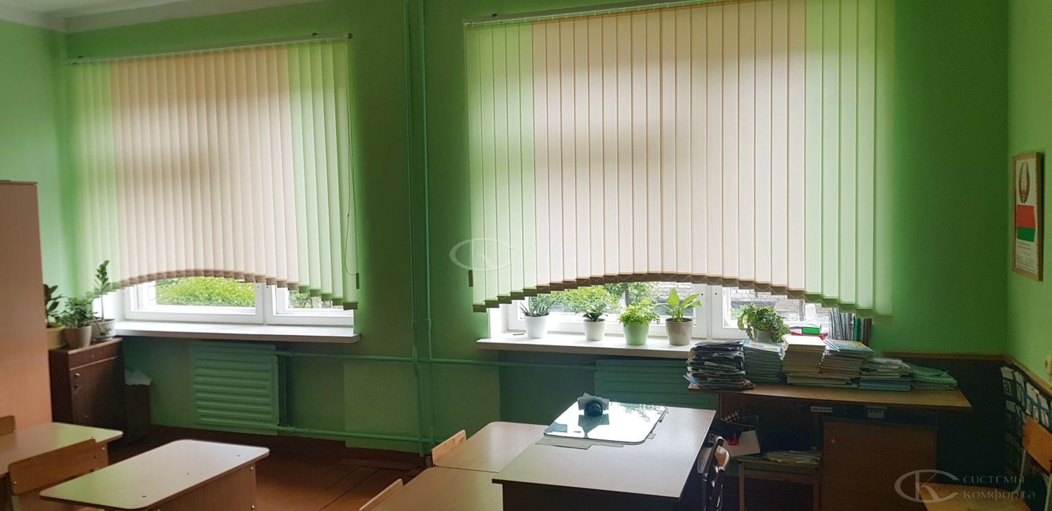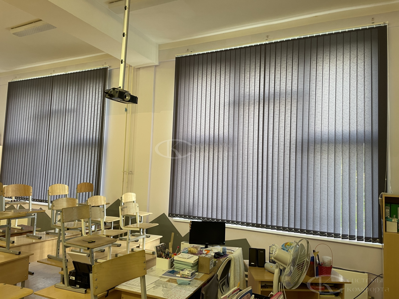 Вертикальные жалюзи часто используют в школе по причине функциональности и экономичности. Такие жалюзи позволяют быстро регулировать световой поток, но они же чаще всего и ломаются. Из-за неправильной эксплуатации тканевые ленты и пластиковые элементы путаются и обрываются. Особенно часто ломаются при проветривании помещения. Если неправильно выбрать высоту изделия, то они будут сметать грязь с пола или с подоконника.