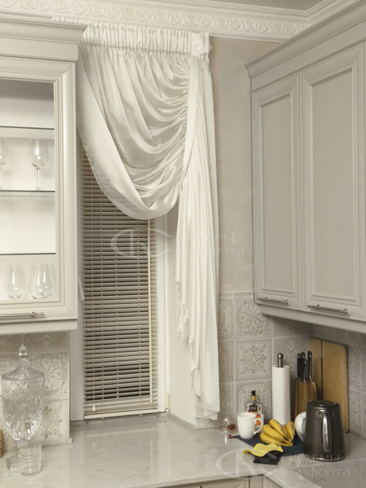 Римские шторы на кухню делают любой интерьер более элегантным и презентабельным. Изделия изготавливаются из тканевых материалов, что позволяет их стирать руками или в стиральной машине. При установке требуется минимум места для крепления.
