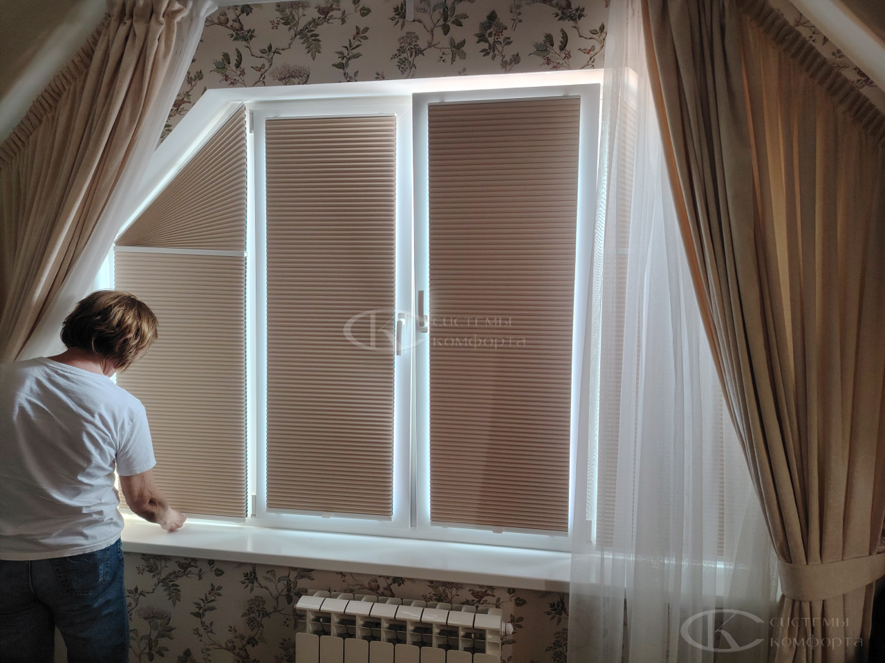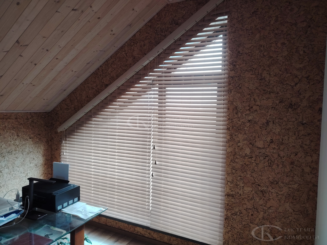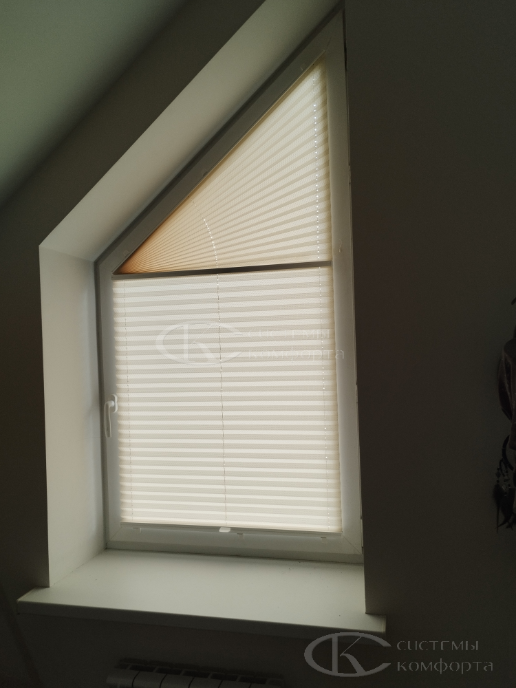 Компания «Системы комфорта» изготавливает жалюзи на треугольные окна и на другие проемы нестандартной формы по индивидуальному заказу. Чаще всего они встречаются в мансарде: окно треугольной формы размещается на фронтоне и помогает обеспечить естественное освещение подкровельного пространства. Однако и в других помещениях могут быть оконные проемы необычной формы, для которых необходимо изготовить персональные системы управления светом.